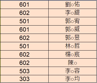 (依抽籤錄取順序)