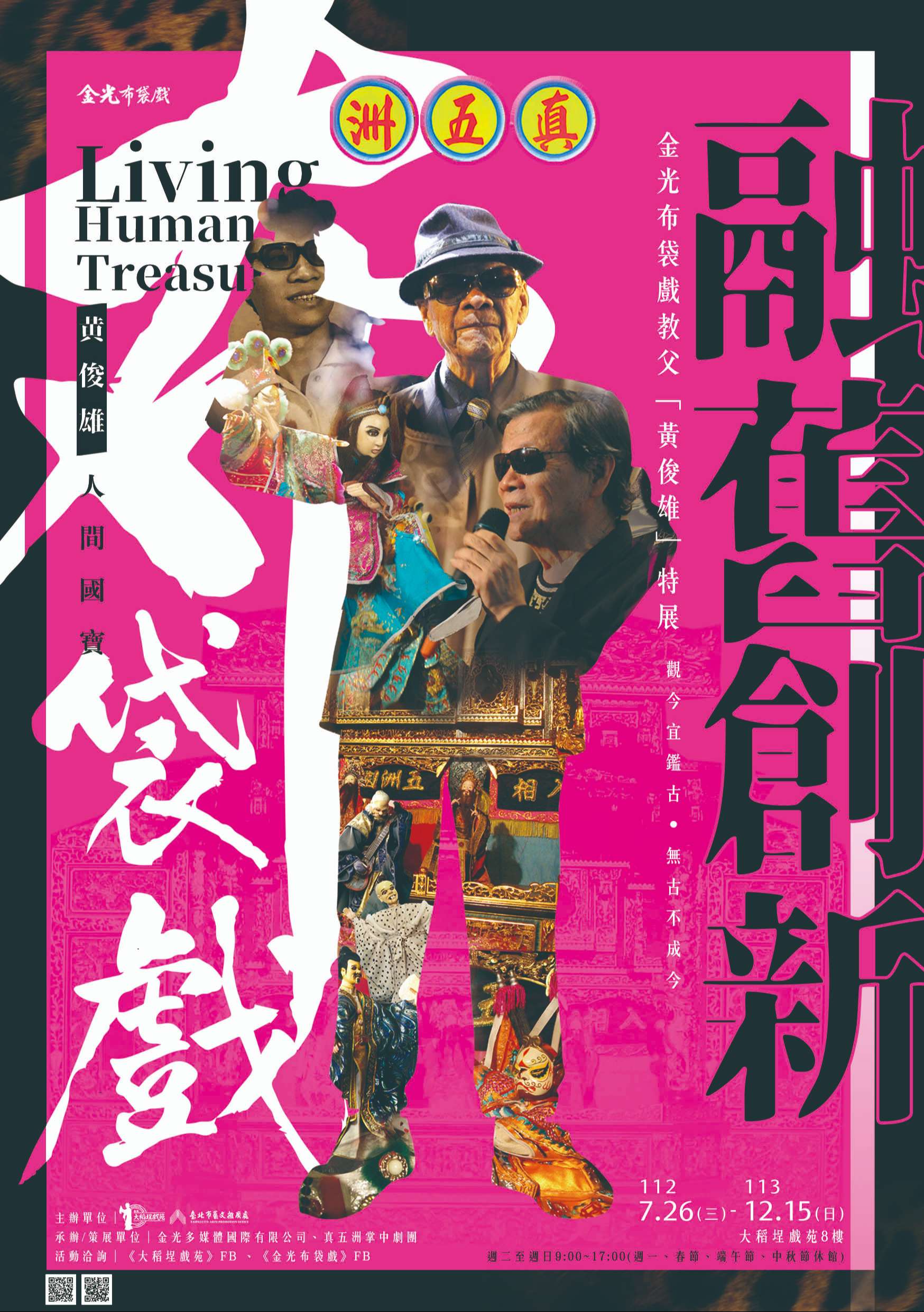 一、本特展以金光布袋戲教父「黃俊雄」傳承與創新布袋戲的脈絡為主,展出其劇本手稿、蒐藏文物、作品精華片段以及三代同堂口白傳承的珍貴影像記錄,讓參觀民眾了解其生平事蹟,更可一窺臺灣傳統藝術-布袋戲,一路以來的成長與變化;此外,展場更搭設主題實景重現招牌主角史艷文、藏鏡人、黑白郎君經典決戰時刻,同時《金光布袋戲》高人氣角色,如俏如來、戮世摩羅、雪山銀燕......等,亦於展覽期間現身大稻埕戲苑與民眾見面。
