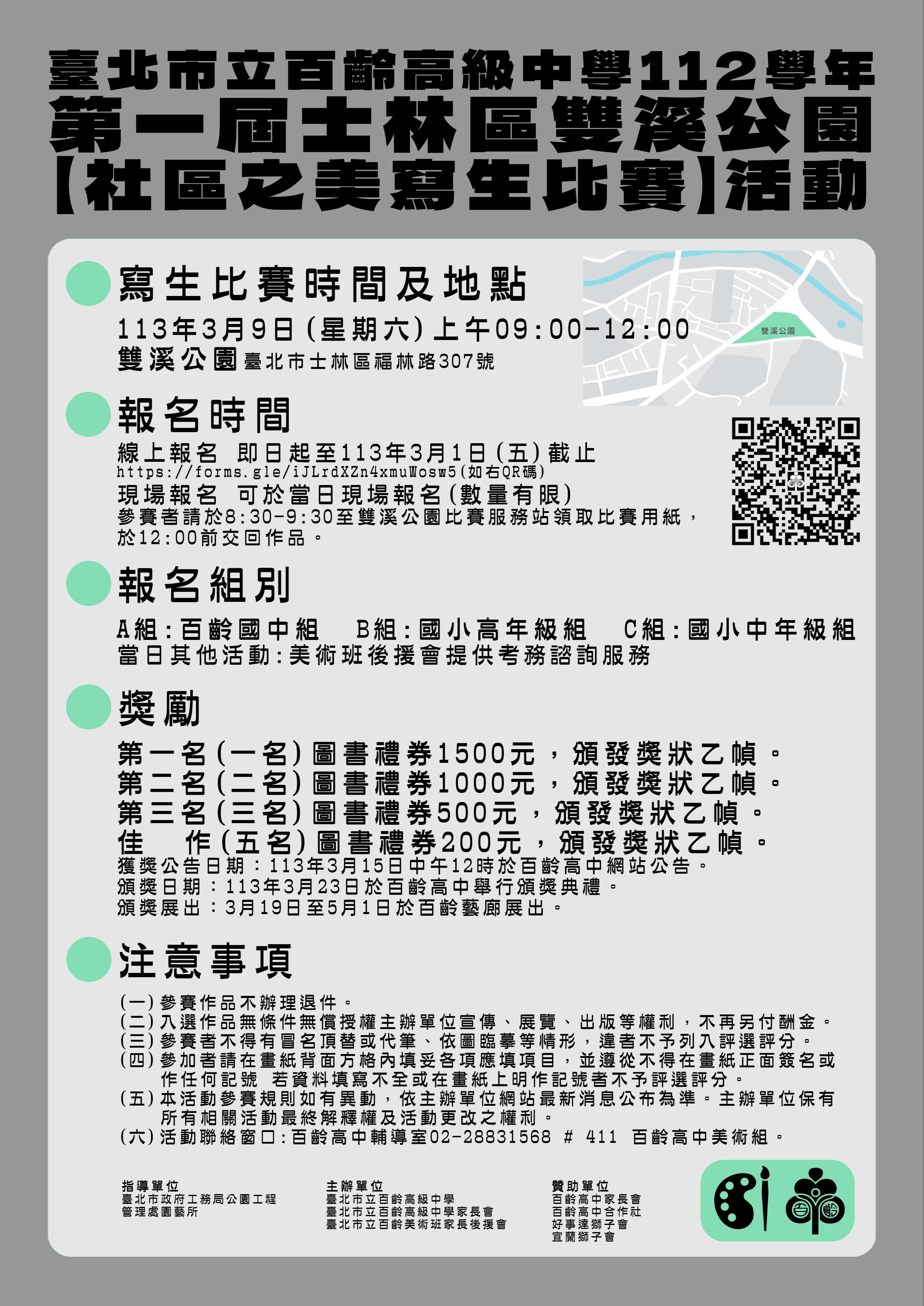 二、比賽地點:雙溪公園內(臺北市士林區福林路 307 號),若 遇雨天照常舉行。