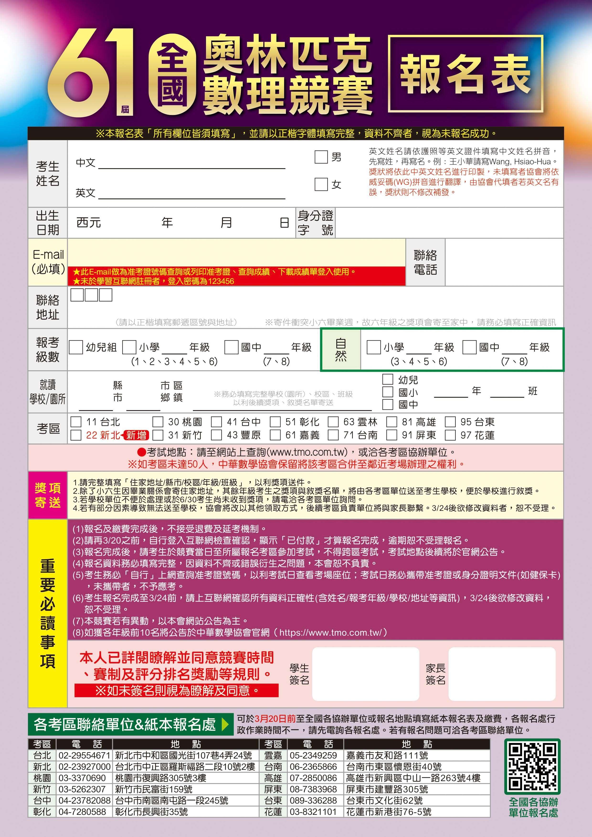 二、檢附「第61屆全國奧林匹克數理競賽」競賽活動簡章,供 貴校參閱。