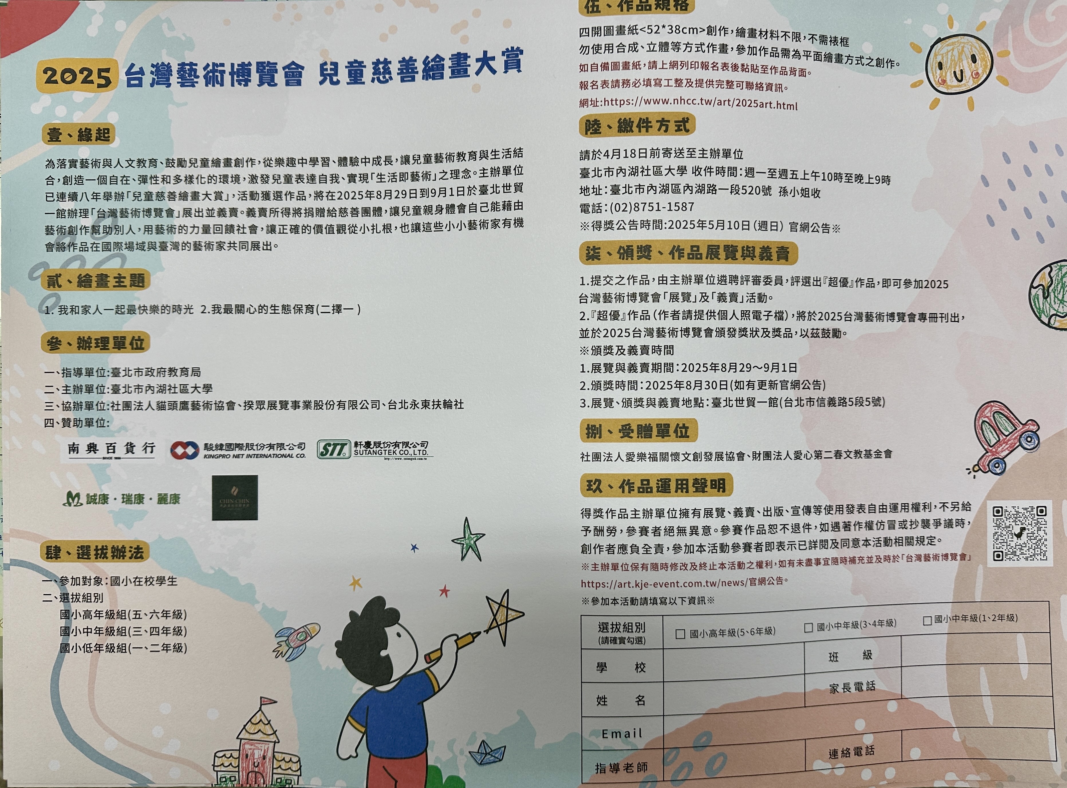 3.詳見以下說明,並洽學務處訓育組領取簡章及圖畫紙,謝謝。