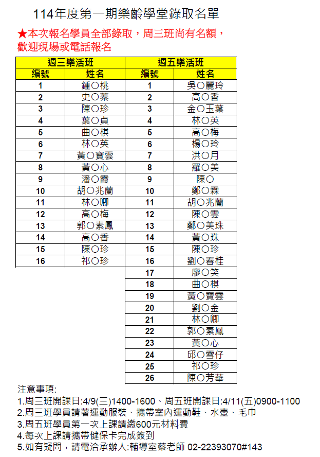 B.周三班尚有名額,歡迎報名參加~