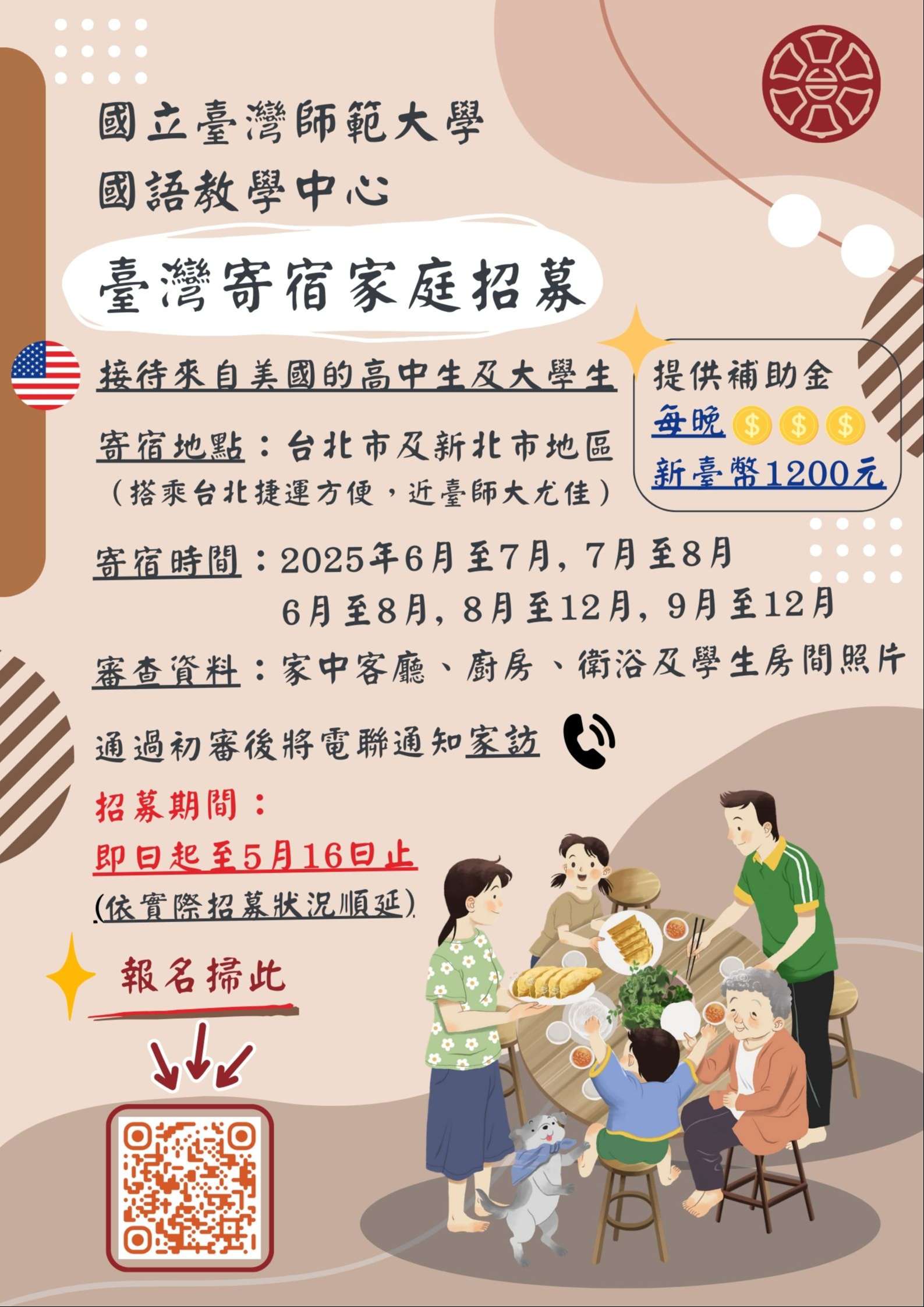 二、為促進美國高中生及大學生於在臺學習期間與當地臺灣人進行文化交流、培養日常生活中運用華語的能力,顧特別尋找對認識美國文化、並願意敞開家門的臺灣家庭,以提供學員研習期間的寄宿接待,同時增進旨揭家庭與外國學