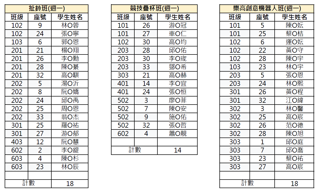 親愛的家長您好:★第一階段錄取名單請點此,亦可瀏覽下方表格及附件。★樂高創意機器人、國標拉丁舞、圍棋等班別已額滿,「不開放第二階段報名」。
